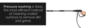 Pressure washing is likely the most efficient method of cleaning coated surfaces to remove dirt and grime. It can be used to clean bus shelters, refresh commercial powder-coated patio furniture and other outdoor surfaces. The pressure washer should be used on a low-pressure setting with filtered water. Don’t use unfiltered tap water or groundwater.